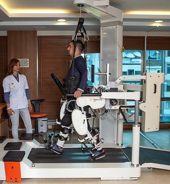 Роботизированное устройство для восстановления навыков ходьбы, подвижности нижних конечностей. Система помогает пациентам заново научиться ходить. В зависимости от индивидуальных особенностей перенесенной травмы, система фиксирует все необходимые показатели и обеспечивает разумную нагрузку на определенные группы мышц пациента. Исходя из сложности ситуации и этапа восстановления реабилитологи подбирают одну из нескольких программ виртуальной окружающей среды. Аппарат эффективен у пациентов с перенесенной тяжелой черепно-мозговой травмой, травмами